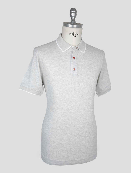 Kiton Gray Cotton Polo Shirt - Button Clip Closure | Handmade Italy