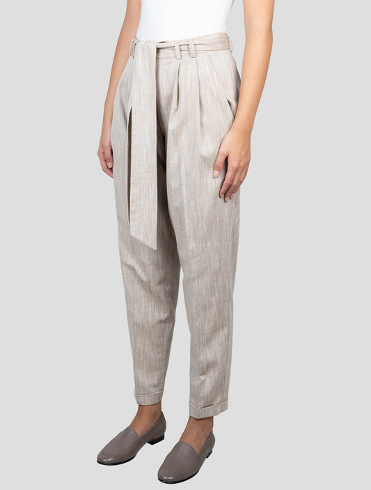 Kiton Women's Beige Virgin Wool Silk Linen Tailored Pants