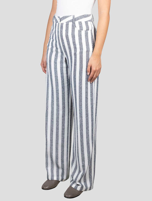 Kiton Women's Viscose Cotton Regular Fit Pants White Blue Italian