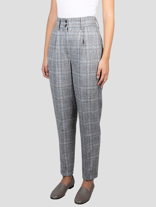 Kiton Handmade Wool Alpaca Plaid Trousers Gray Brown Women's