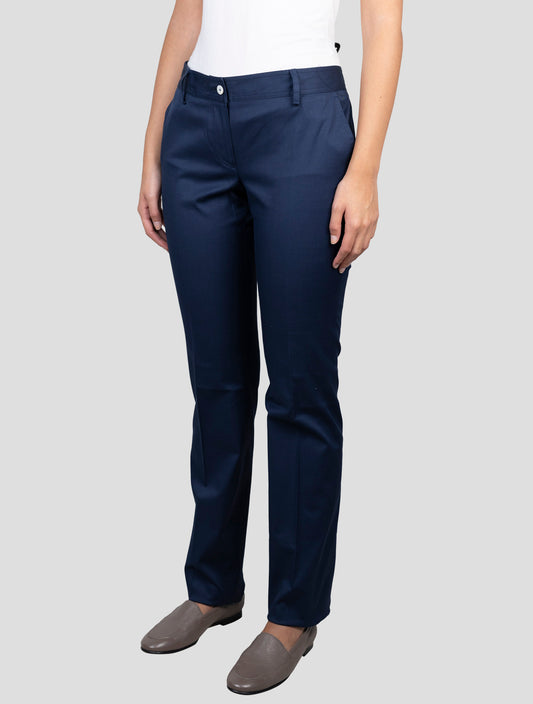 Kiton Women's Blue Cotton Pants - Italian Handmade Regular Fit