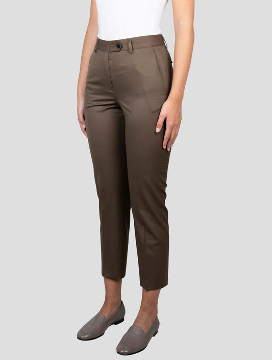 Kiton Brown Virgin Wool Women's Tailored Pants - Handmade Italian