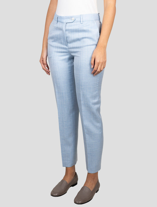 Kiton Women's Light Blue Wool Silk Linen Tailored Pants Italian