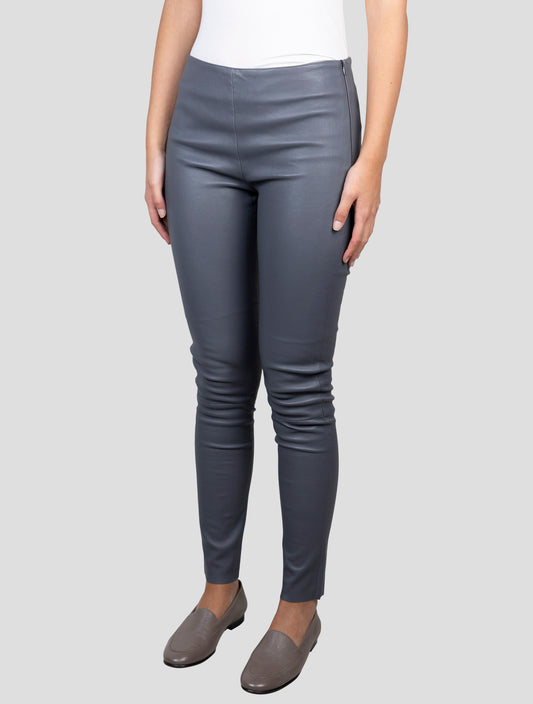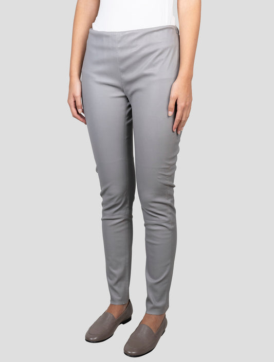 Kiton Women's Gray Leather Pants - Handmade Italian Premium