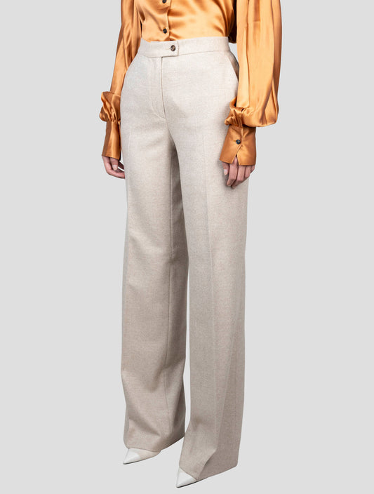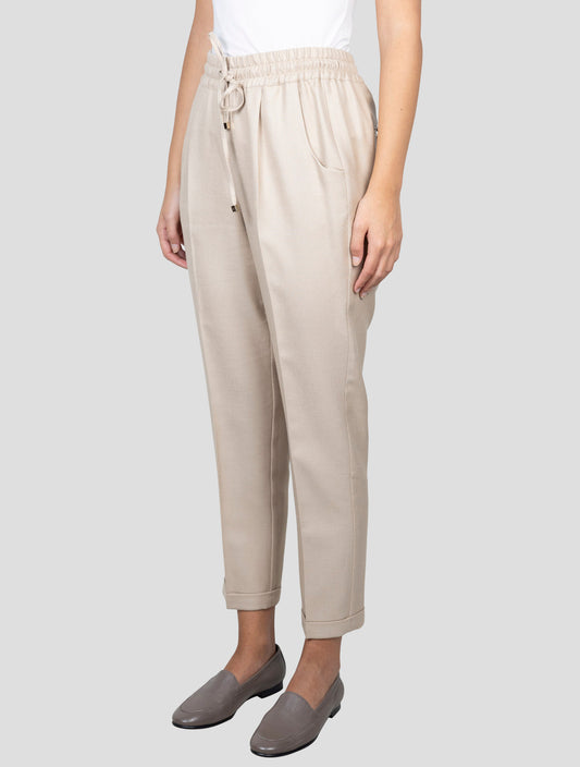 Kiton Women's Beige Virgin Wool Cashmere Trousers Italian Handmade