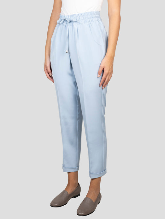 Kiton Women's Handmade Light Blue Silk Pants - Italian Luxury