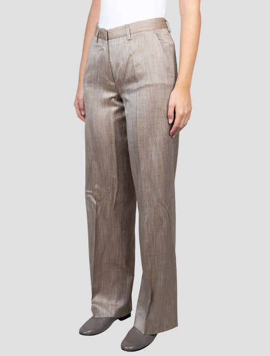 Kiton Donna Luxury Wool Silk Brown Textured Pants Women's Italian
