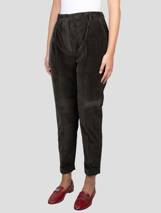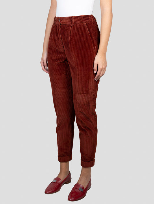 Kiton Brown Cotton Velvet Pants - Handmade Italian Women's Trousers