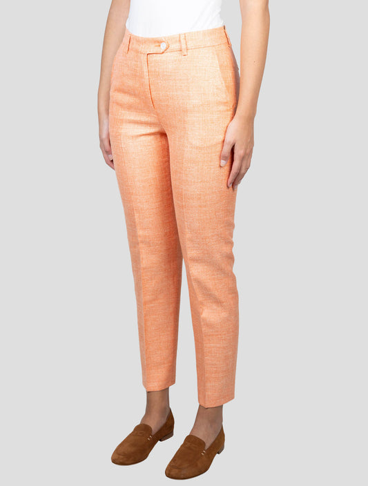Kiton Orange Silk Linen Virgin Wool Women's Pants Handmade Italy