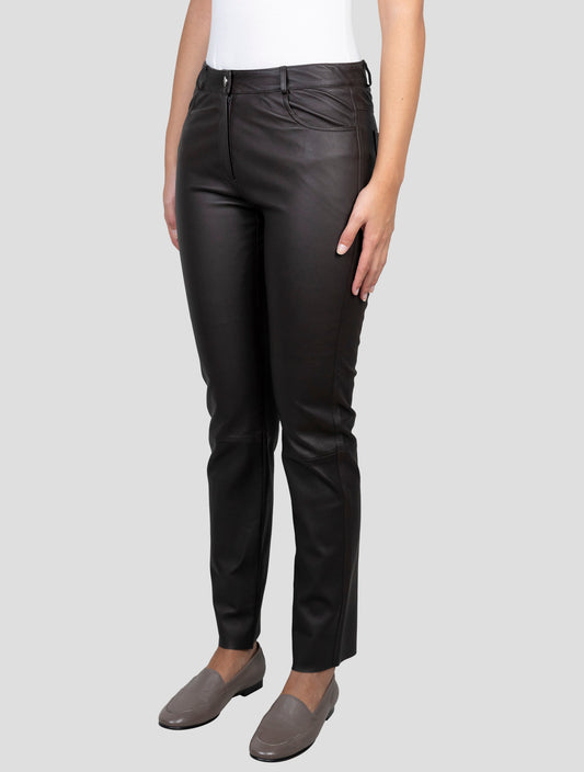 Kiton Women's Brown Leather Pants - Premium Italian Handmade