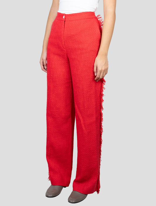 Kiton Red Cotton Women's Pants - Italian Handmade Tailored Trousers