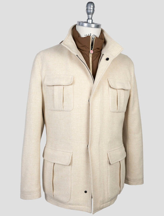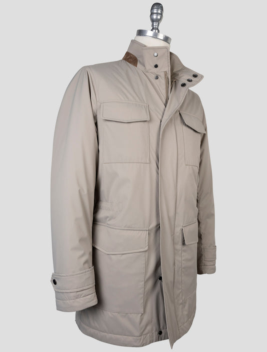 Kiton Beiger Polyester Mantel mit Doppelverschluss - Italienische Luxusoberbekleidung