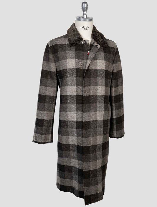 Kiton Premium Wool Cashmere Overcoat Gray Double-Breasted Italian