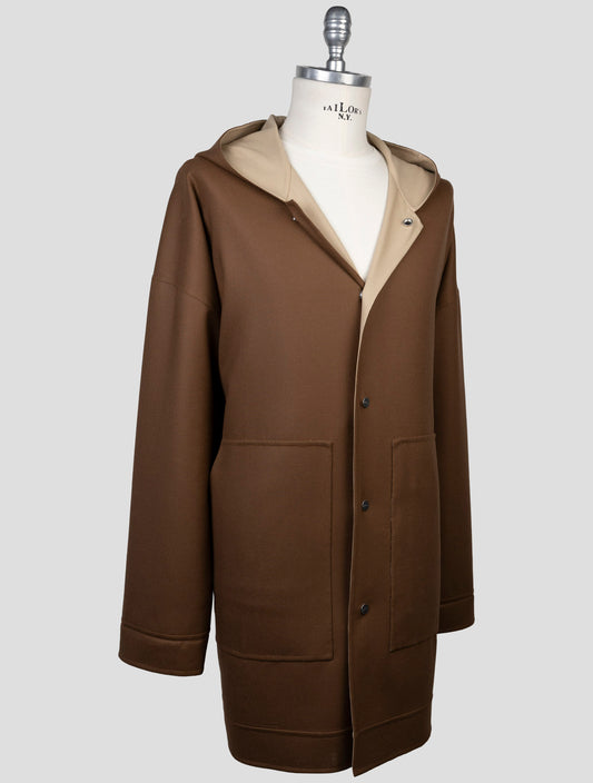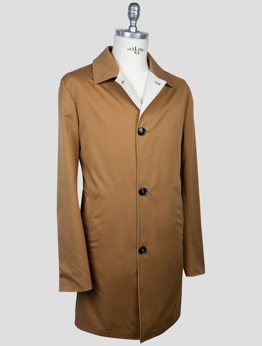 Kiton Wende-Mantel aus braun-beigem Baumwoll-Virgin-Wool