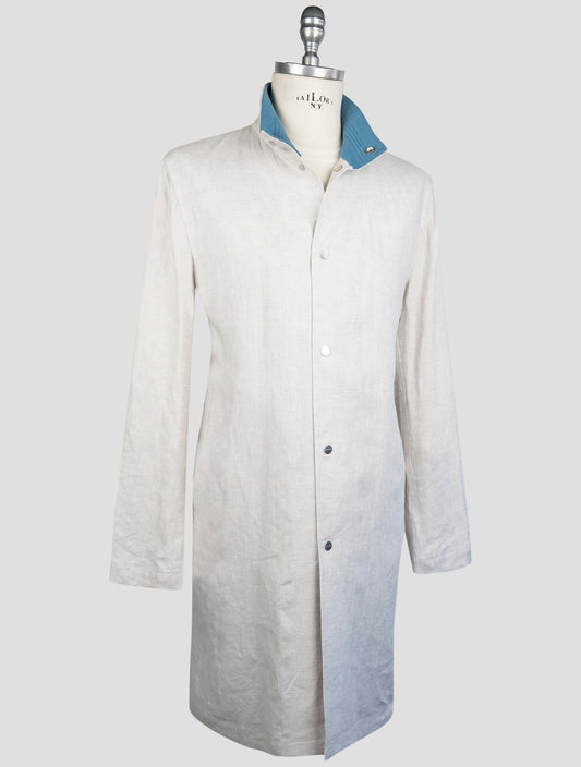 Kiton Blau Beige Cashmere Seiden Wende-Mantel