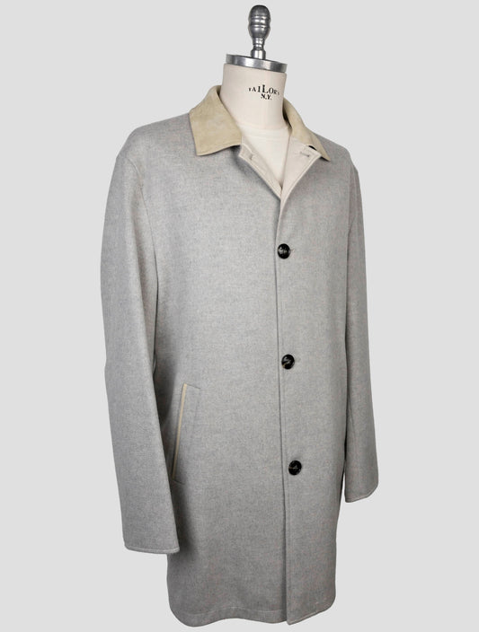 Kiton Beiger Cashmere-Seiden-Mantel - Ungefütterter italienischer Luxus-Mantel