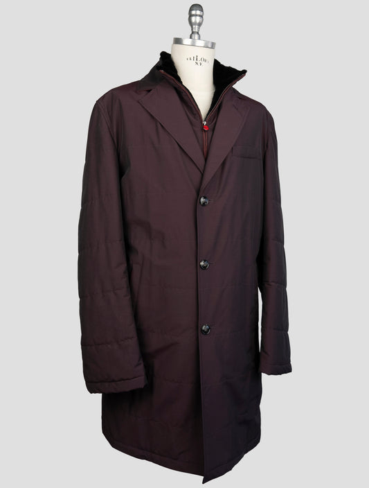 Kiton Burgunder Fleece-Wollmantel mit Wiesel-Futter