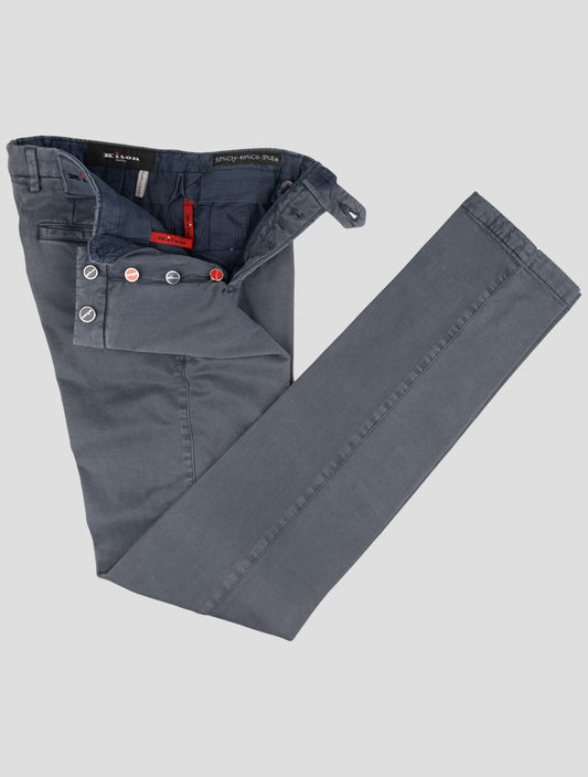 Kiton Blue Cotton Lyocell Stretch Pants - Italian Handmade Trousers
