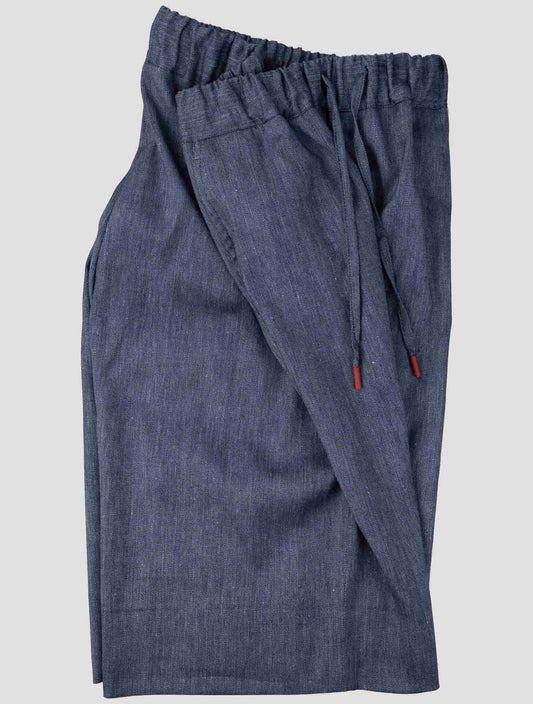 Kiton Blaue Leinen Cashmere Seiden Kurze Hose