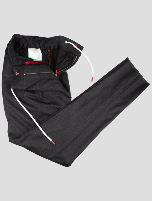 Kiton Herren Anzughose Dunkelgrau 100% Wolle Italienische Maßanfertigung