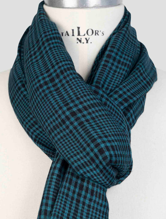Kiton Handmade Cashmere Silk Scarf Green Blue Plaid Italian