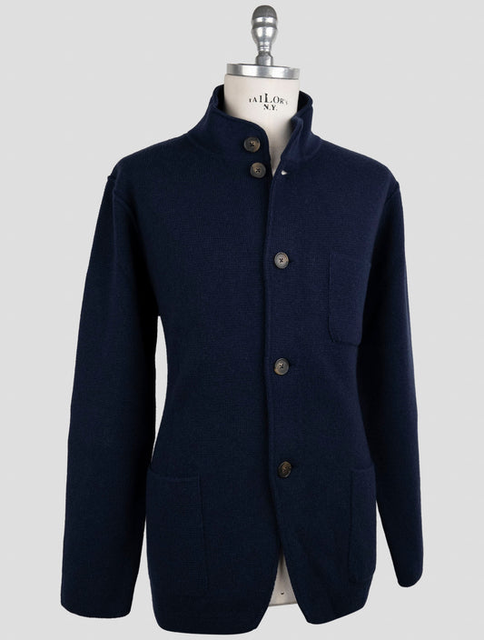 Kiton Blau-Grauer Wollpullover mit durchgehendem Reißverschluss
