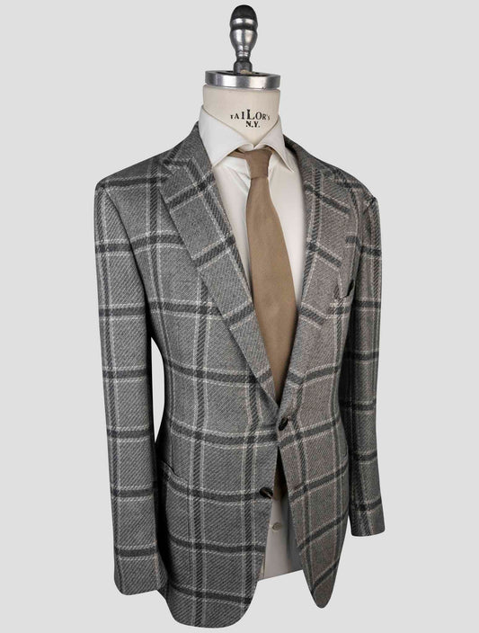 Kiton Dark Gray Plaid Cashmere Blazer - Italian Luxury Menswear
