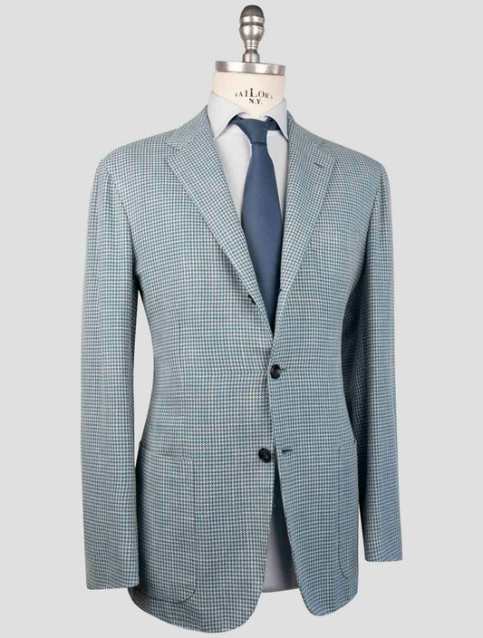Blazer de Algodón Houndstooth Azul Kiton - Chaqueta Deportiva Italiana
