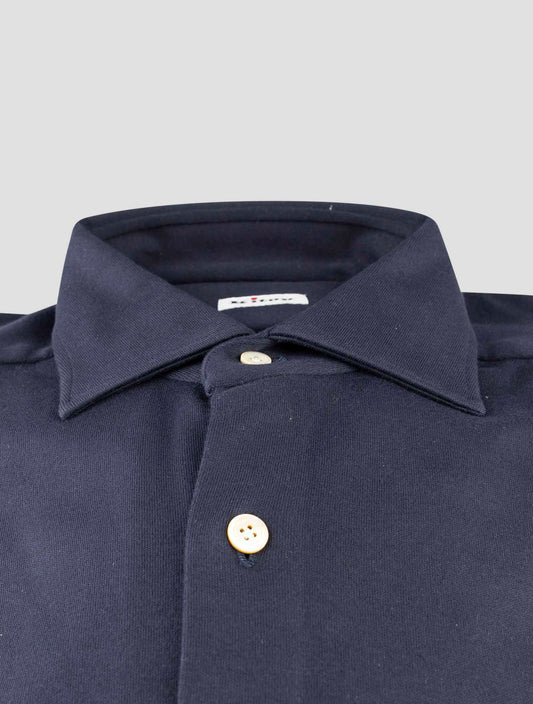 Kiton Blue Cotton Dress Shirt - Handmade Italian Regular Fit