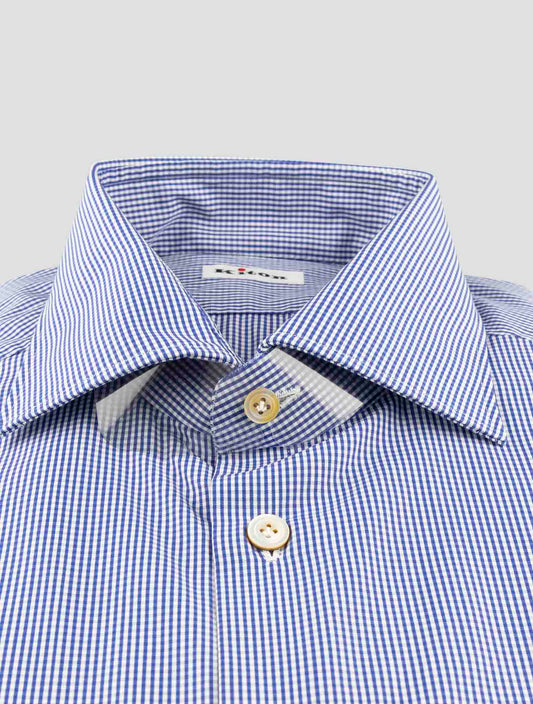 Kiton Blue Cotton Dress Shirt - Handmade Italian Regular Fit