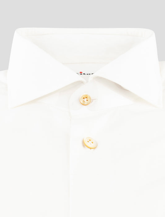 Kiton White Cotton Dress Shirt - Handmade Italian Regular Fit