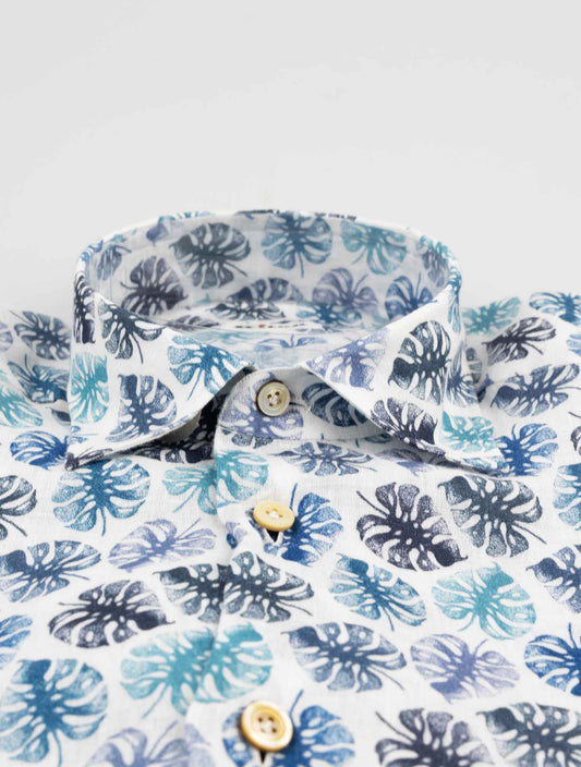 Kiton Blue Floral Cotton Shirt - Handmade Italian Dress Shirt