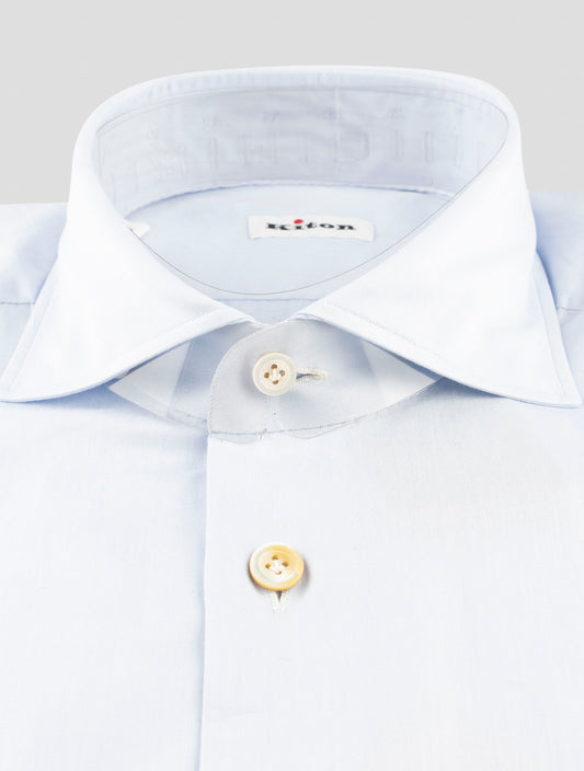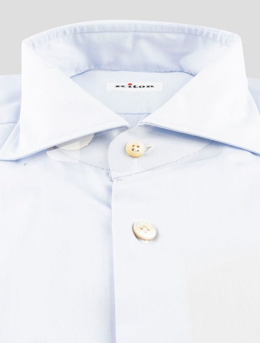 Kiton Premium Handmade Cotton Dress Shirt Light Blue Italian