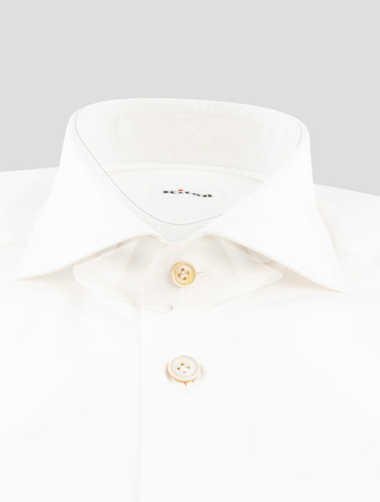 Kiton White Cotton Dress Shirt - Handmade Italian Regular Fit