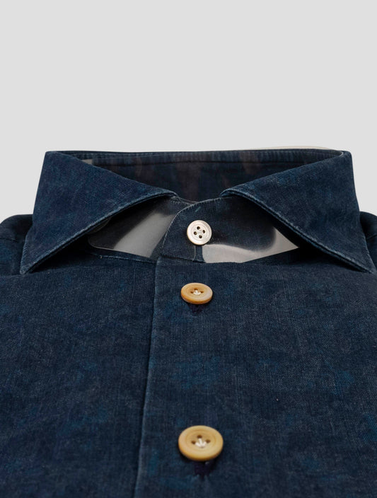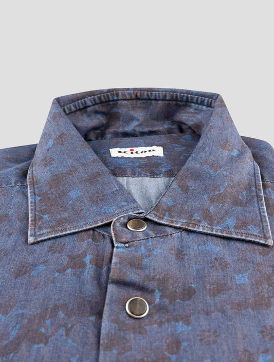 Kiton Premium Cotton Blue Floral Dress Shirt Handmade Italian