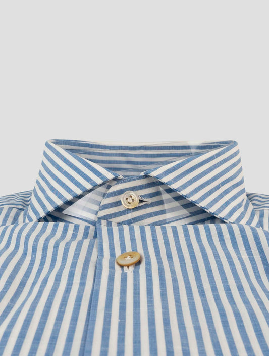 Kiton Handmade Cotton Linen Shirt Blue White Regular Fit Italian