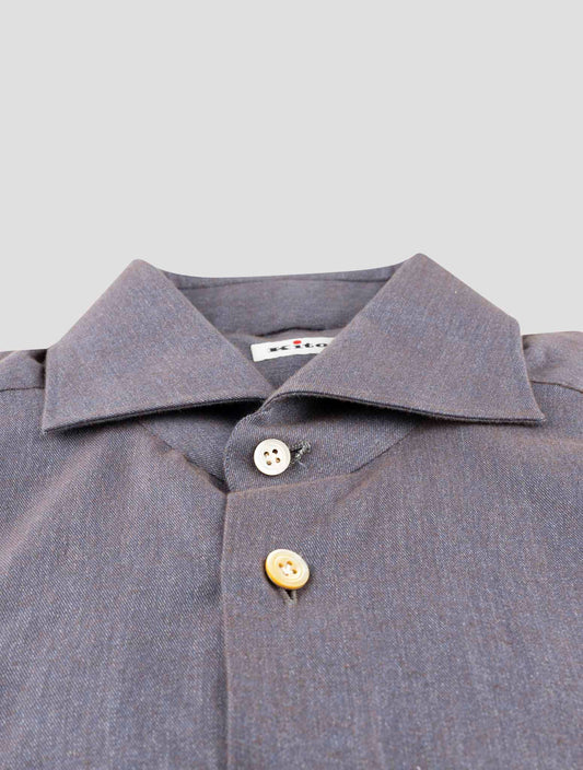 Kiton Gray Cotton Dress Shirt - Handmade Italian Regular Fit