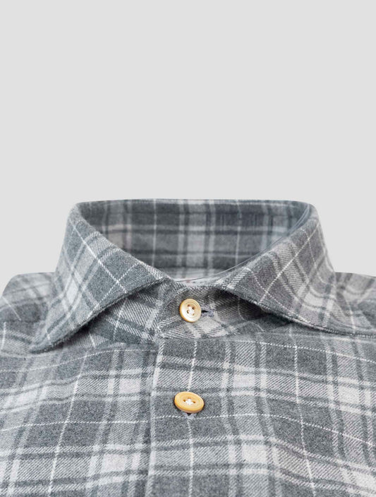 Kiton Gray Plaid Cotton Dress Shirt - Handmade Italian Regular Fit