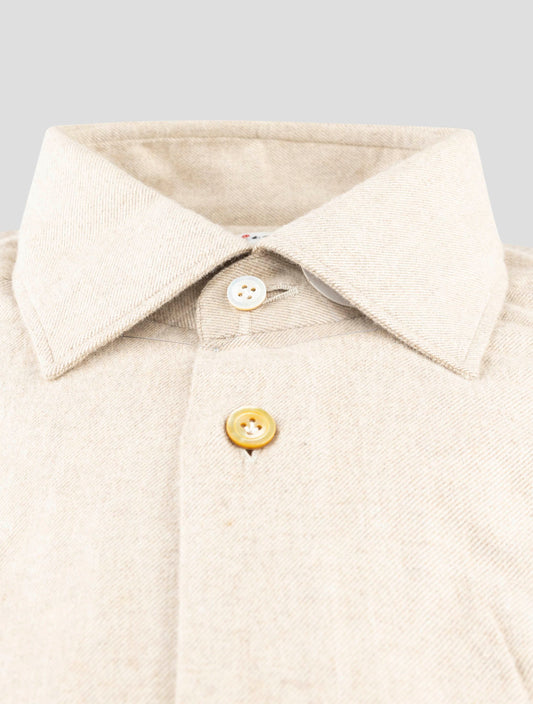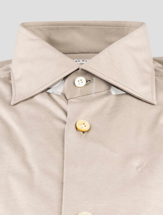 Kiton Handmade Cotton Dress Shirt Beige Premium Italian Mens