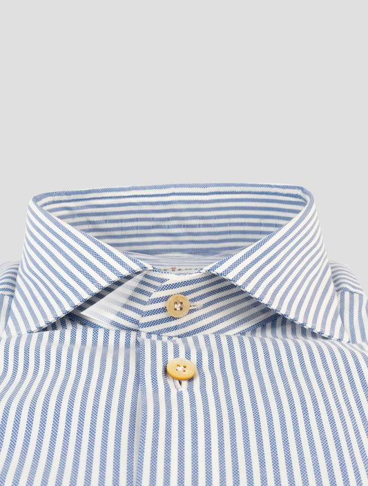 Kiton Handmade Blue White Striped Cotton Dress Shirt Italian
