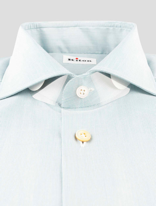 Kiton Premium Cotton Striped Dress Shirt Light Blue White Italian