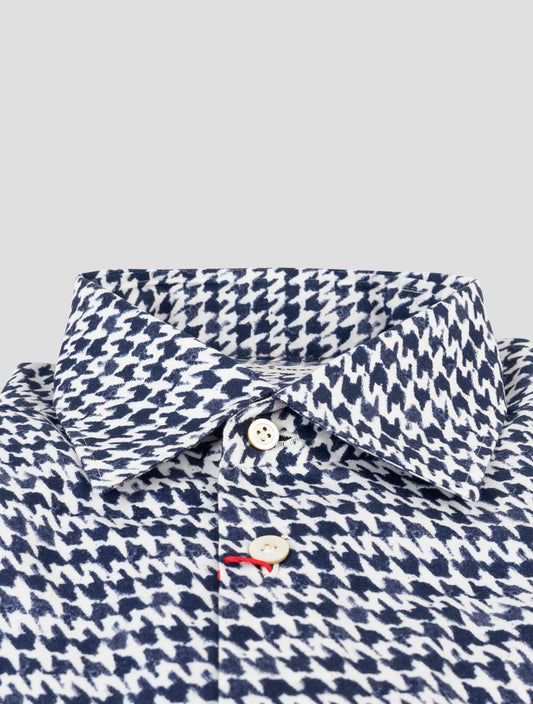 Kiton Premium Cotton Dress Shirt - Blue White Pied de Poule Pattern