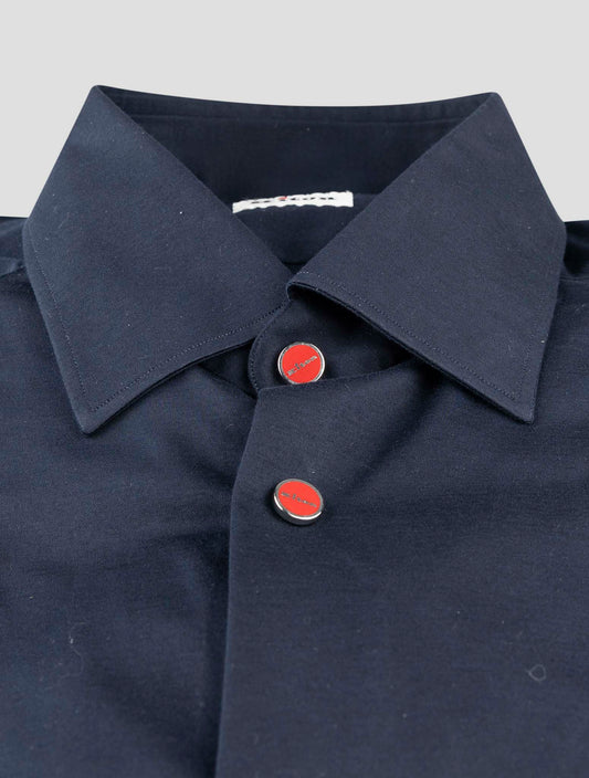 Kiton Blue Cotton Dress Shirt - Handmade Italian Premium Men's