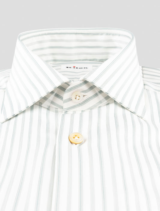 Kiton Green Cotton Dress Shirt - Handmade Italian Striped Regular Fit