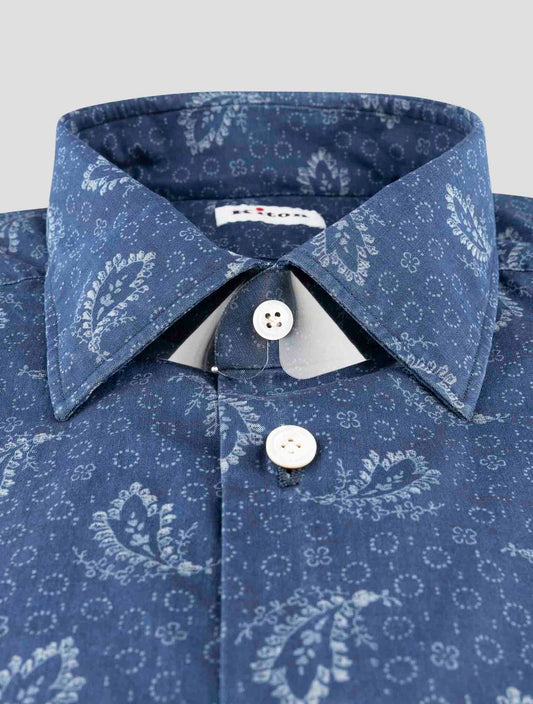 Kiton Handmade Cotton Dress Shirt Blue Floral Italian Premium