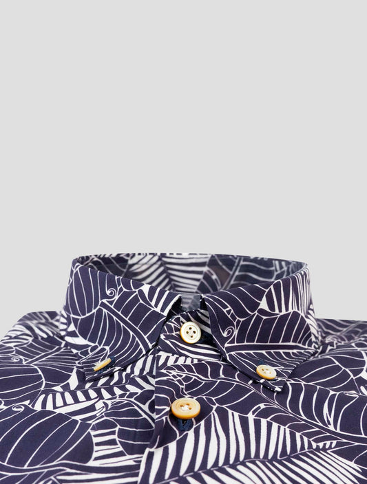 Kiton Blue Cotton Dress Shirt - Handmade Italian Floral Pattern