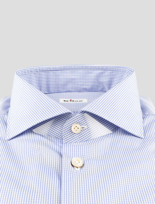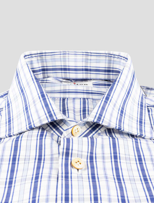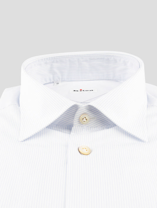 Kiton Blue White Cotton Dress Shirt - Handmade Italian Premium