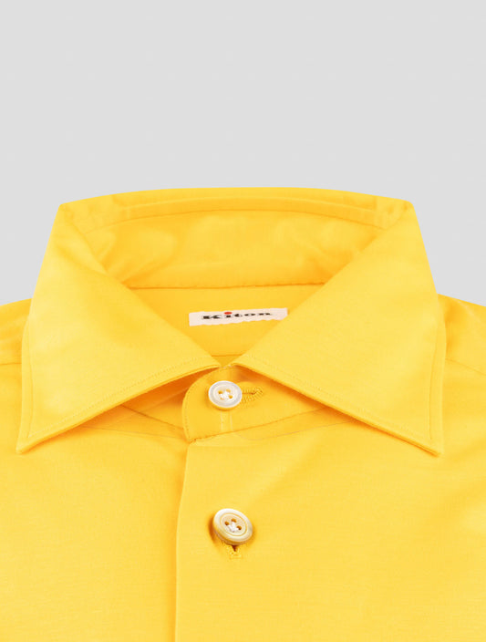 Kiton Yellow Cotton Dress Shirt - Premium Handmade Italian Regular