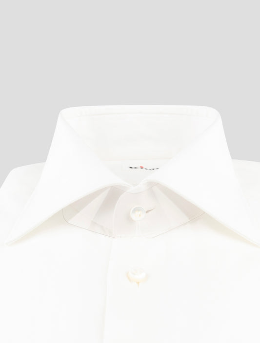 Kiton White Cotton Dress Shirt - Handmade Italian Regular Fit