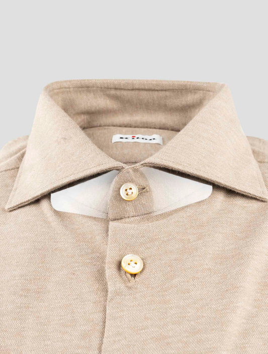 Kiton Brown Cotton Cashmere Shirt - Handmade Italian Regular Fit